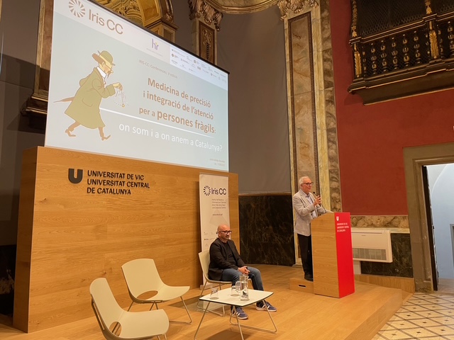 El Dr. Jordi Amblàs Novellas, metge geriatre, professor titular de la Facultat de Medicina de la UVic-UCC, coordinador de l’àrea d’envelliment i cronicitat de l’IRIS-CC, i Director d’Atenció integrada i Cronicitat del Departament de Salut, ha pronunciat la conferència: Medicina de precisió i integració de l’atenció per a persones fràgils: on som i a on anem a Catalunya? El Paranimf de la UVic-UCC ha acollit aquest dimecres, 11 de juny, aquesta conferència que s’emmarca dins del cicle IRIS-CC Conferences.